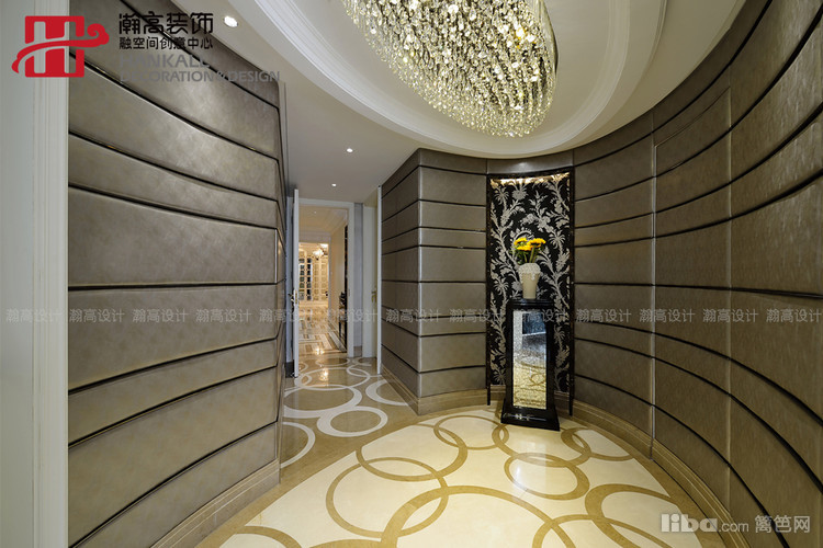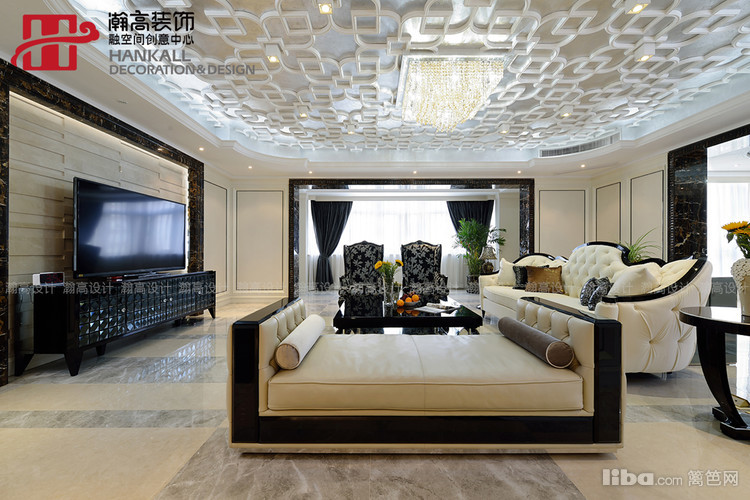 不论是镂空雕花的吊顶,大理石的门洞,还是搭配的皮质软包沙发,无不彰显高贵与大气