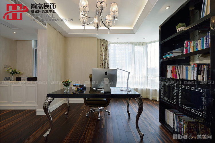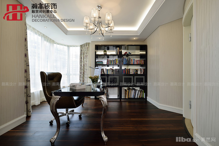浅色的明亮与大方之中的那抹深色的书桌与书柜,更衬托出知性与非凡的气度