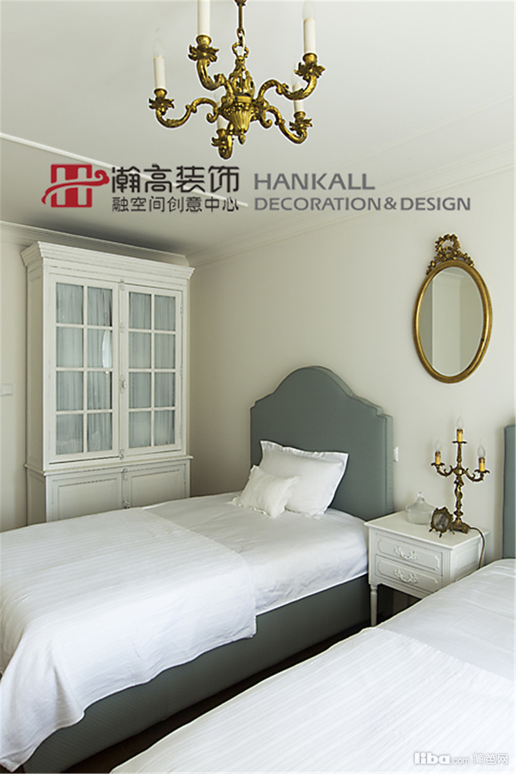 婴儿蓝的卧室,搭配铜镜和香烛,让温馨色彩的柔性质感带入着一份知性的气息。