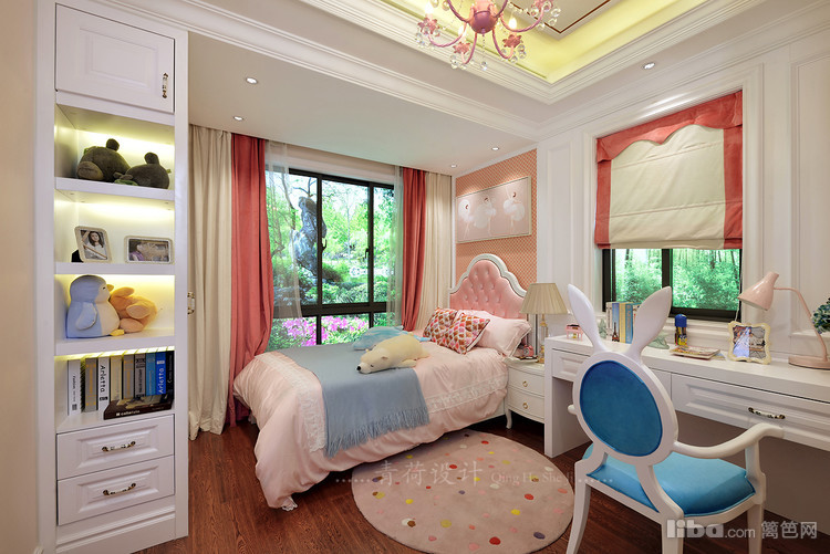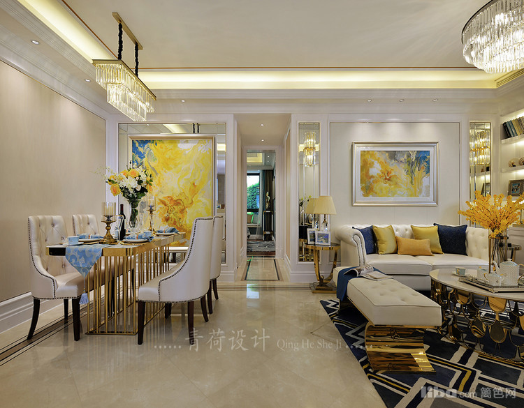 对比的风格简约又不失华丽的意趣 。设计调和了不少浪漫的因素,整体概念不仅仅是装修装饰品的设计 摆放和搭配,甚至可以具体到一个杯子,布艺织物无一不彰显出华贵的气质。