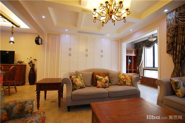 客厅顶面做了假梁的设计,