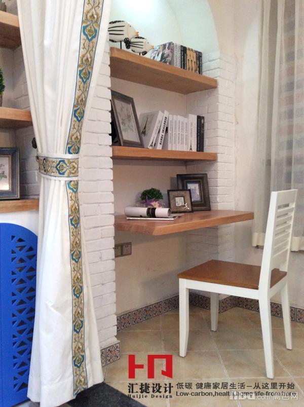 整个空间充满了童趣,在空间划分上,做了一个小的吧台,既能做为一个用餐台面,又把空间做了区分;在角落的地方用隔板做了架子可以作为工作区域。