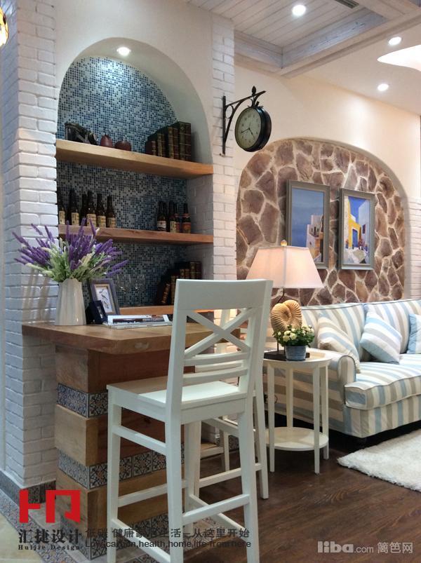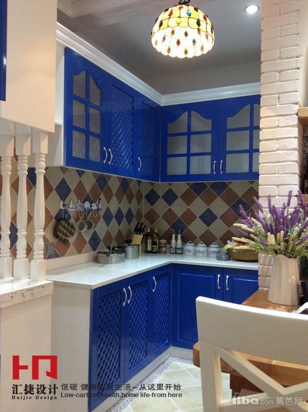因为做饭并不多,所以做了开放式厨房,并采用了地中海的蓝色主色调