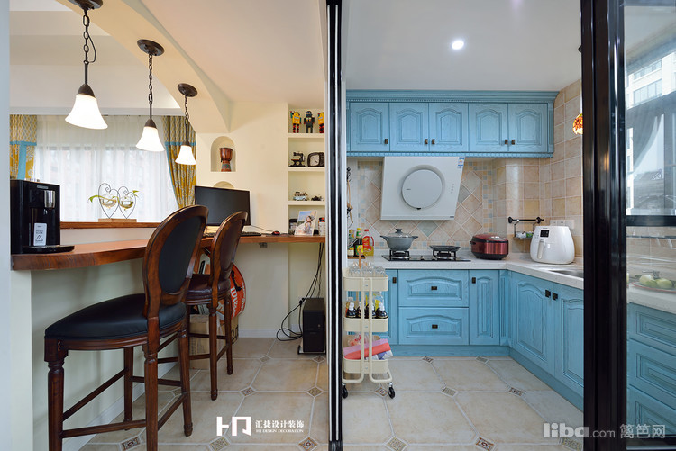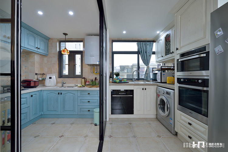 厨房分为中西厨,两面拐角门让空间更为开阔