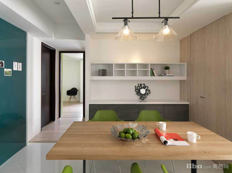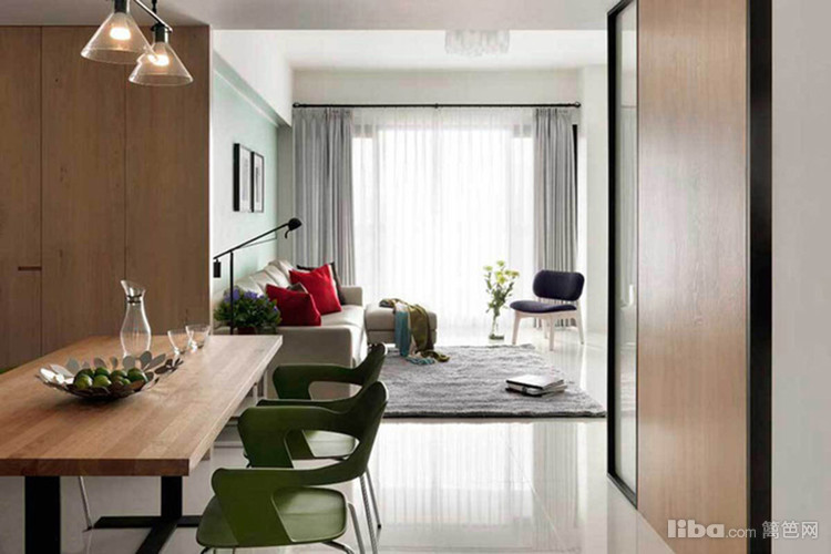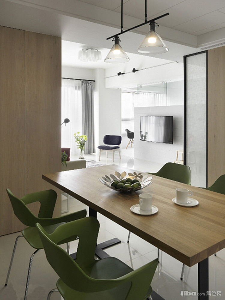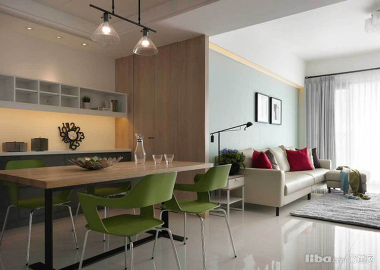 简单体贴的手法呈现属于空间的纯粹美学。以自然舒适的开放性空间,为屋主创造清新质感的空间。大面开窗引进自然日光,映照在湖水绿的客厅墙面上,晕染了满室的轻透明亮。