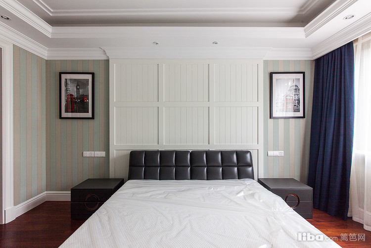 卧室背景墙,黑白作为主色调,配上艺术感的画像,营造一种现代简约的风格。