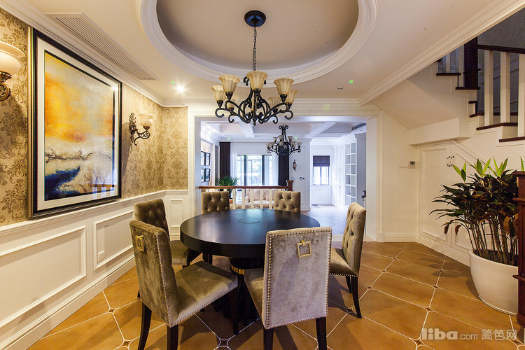 美式风格,混着中式风格的圆形餐桌,意外地有一种和谐美。