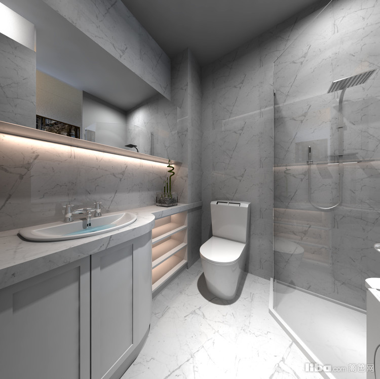 卫生间整体选用冷色调,与客厅的暖色调形成一定程度上的对比。