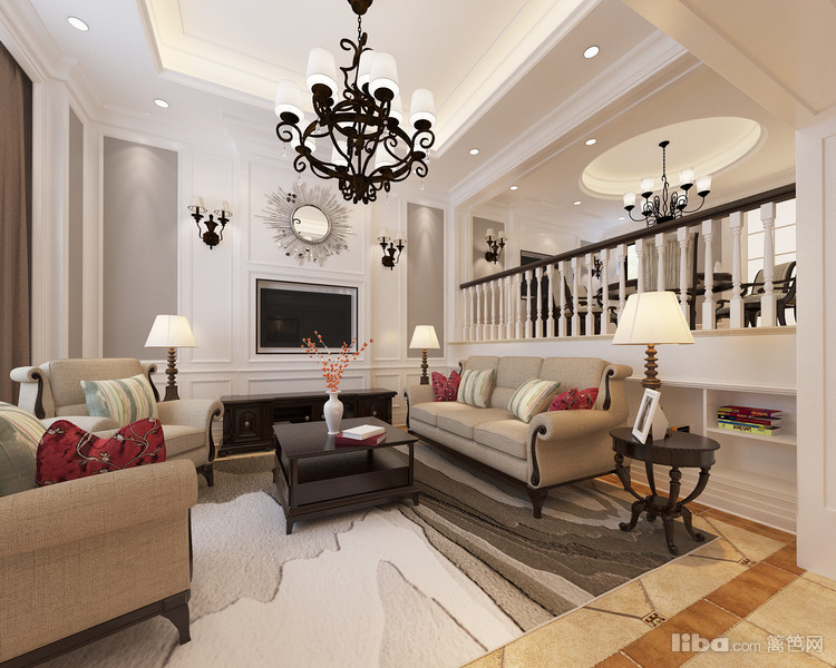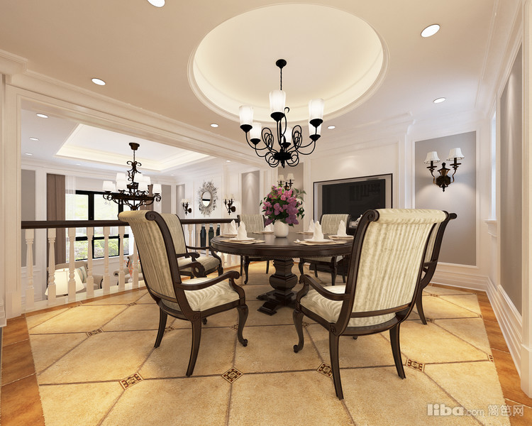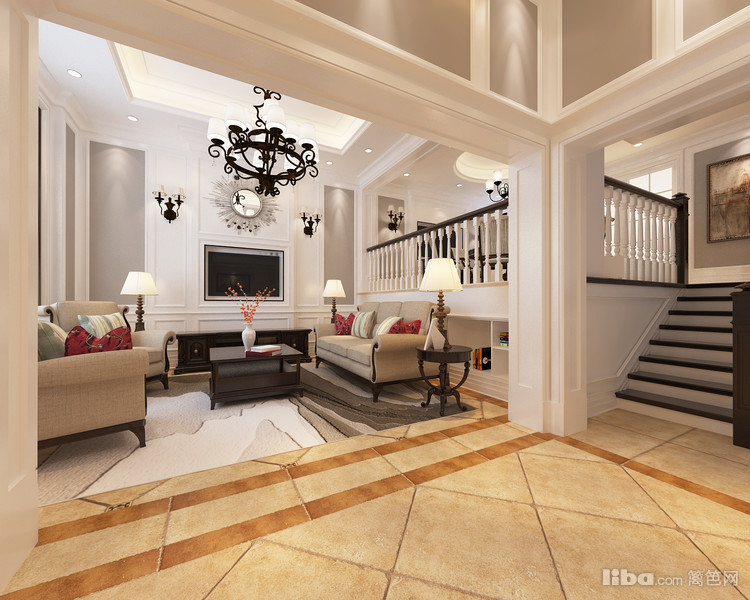 空间上客厅与餐厅上下错落,便于视线交流,整体色调统一,即统一又有层次。