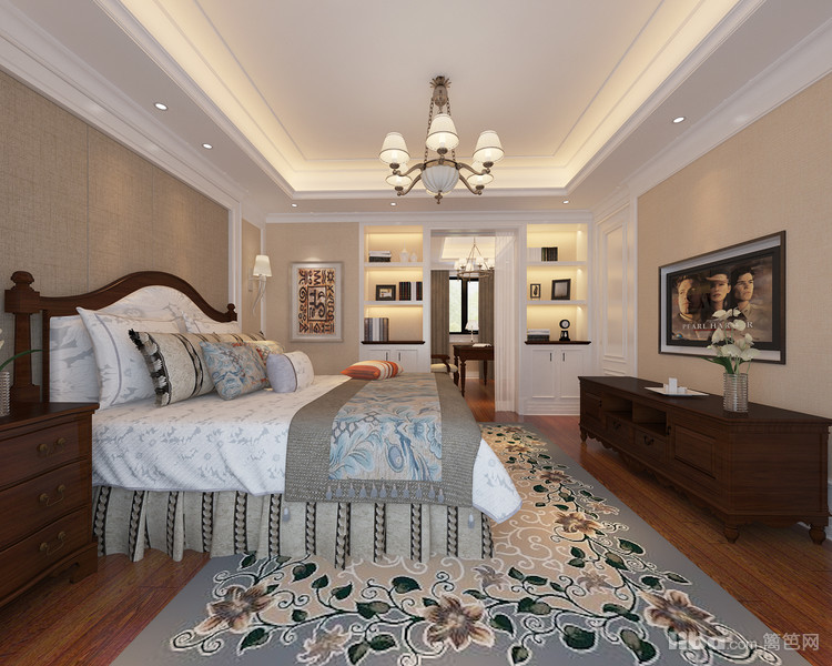 主卧在整个空间搭配上相对比较华贵,暖色调居住更舒服。