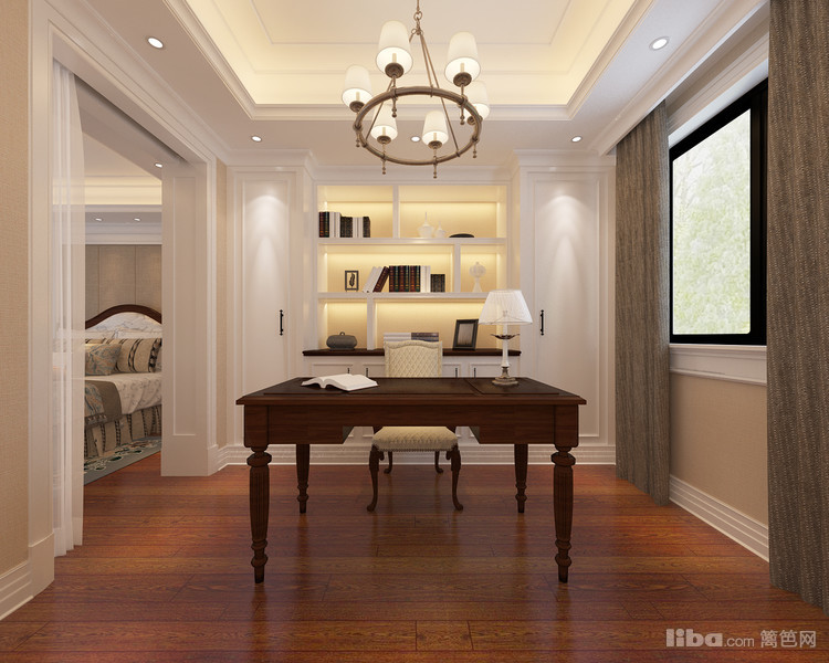 衣帽间和书房巧妙结合,在有限的空间满足了客户的需求,既有书房的气氛又有衣帽间的功能。