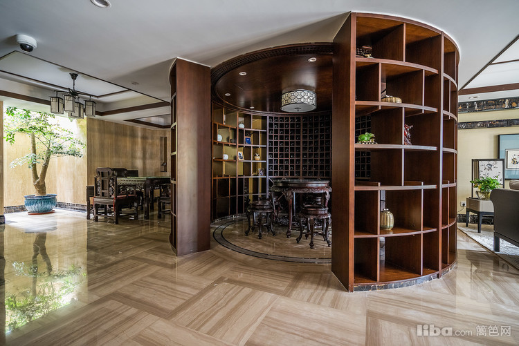 圆形的酒窖,很好的分割了会和与棋牌空间,同时做有很好的展示作用