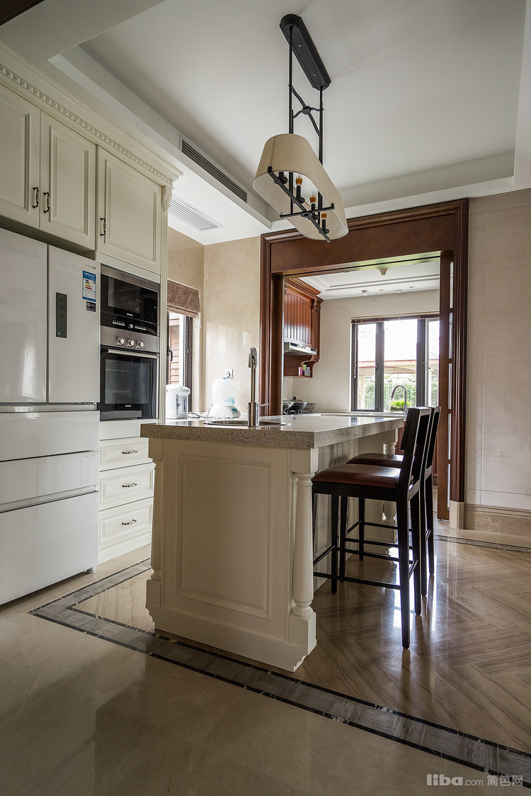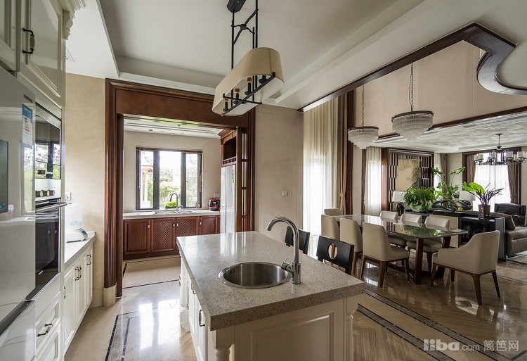 厨房分为中西厨房,中式厨房满足中式餐食烹饪,西厨平时客人来水吧利用,业主有两个可爱的孙子,经常可以看到女主在为两个小孩烹饪西餐,调制餐食,实用性非常强