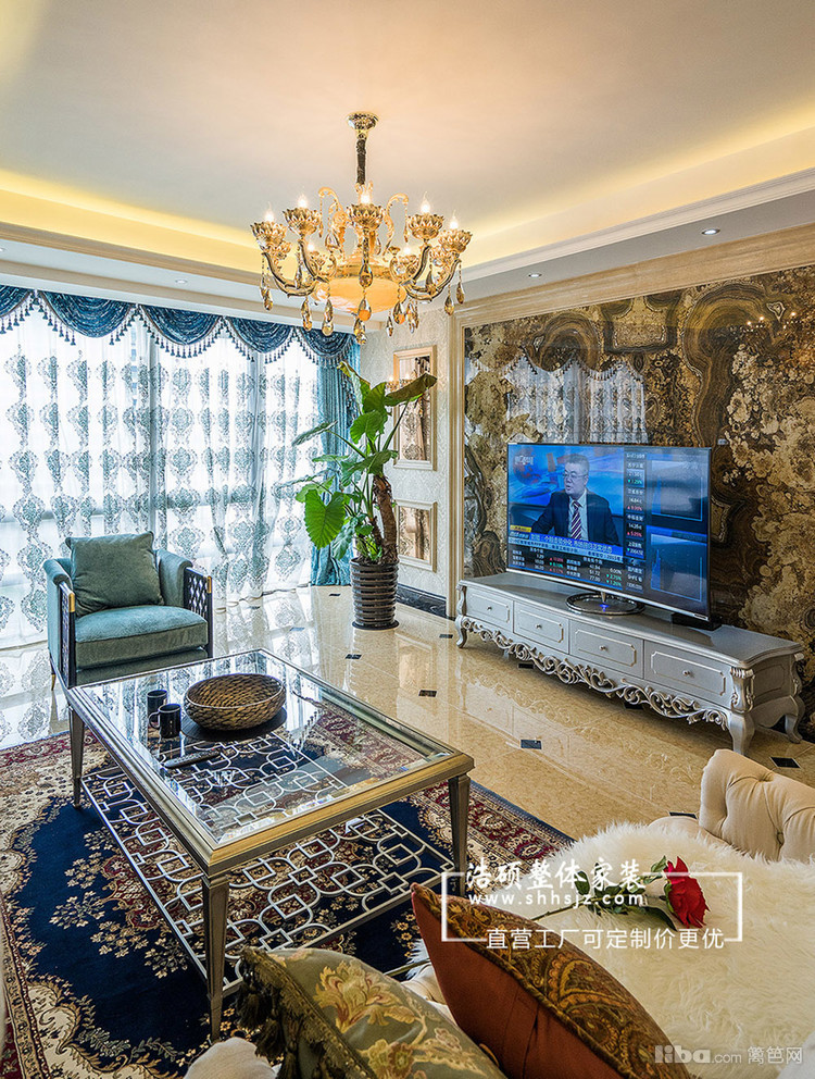 进入客厅,有可能你会觉得奢华的感觉,但是仔细的观察每一个地方都会有不一样的惊喜,有一对翅膀的电视背景墙配上欧式的灯光和典雅,奢华但不奢侈,低调却有内涵。