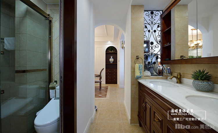 本案为美式乡村风格,以自然色调为主,大面土褐色兼有绿色相衬