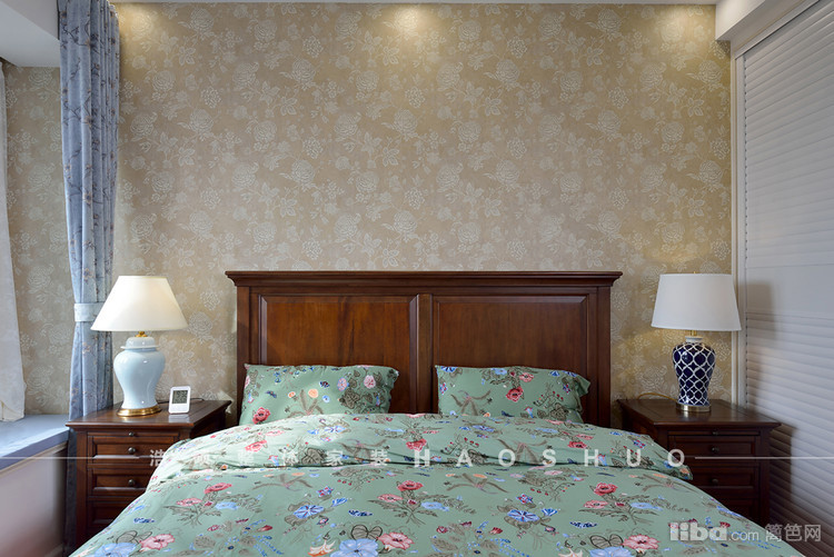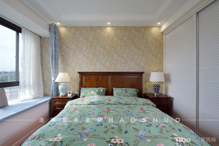 美式作为一种新古典风格,卧室强调优雅和舒适。起居室一般较客厅空间低矮平和,选材上也多取舒适、柔性、温馨的材质组合,可以有效地建立起一种温情暖意的家庭氛围。