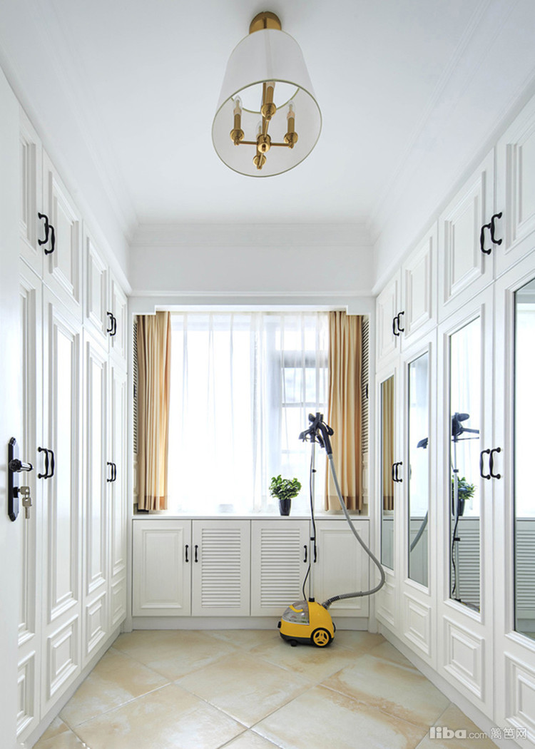 单独设计的衣帽间,满足一家人的衣物收纳。熨烫也有独立的空间