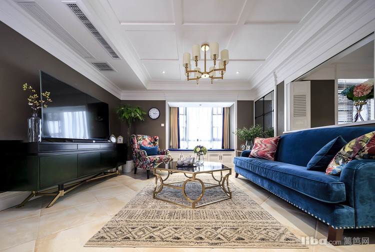 01_客厅 客厅沙发墙上方打通与餐厅的隔墙,使空间形成延伸感,两边做以对称的形式,视觉上规整了格局,突出沙发主位的庄重感。