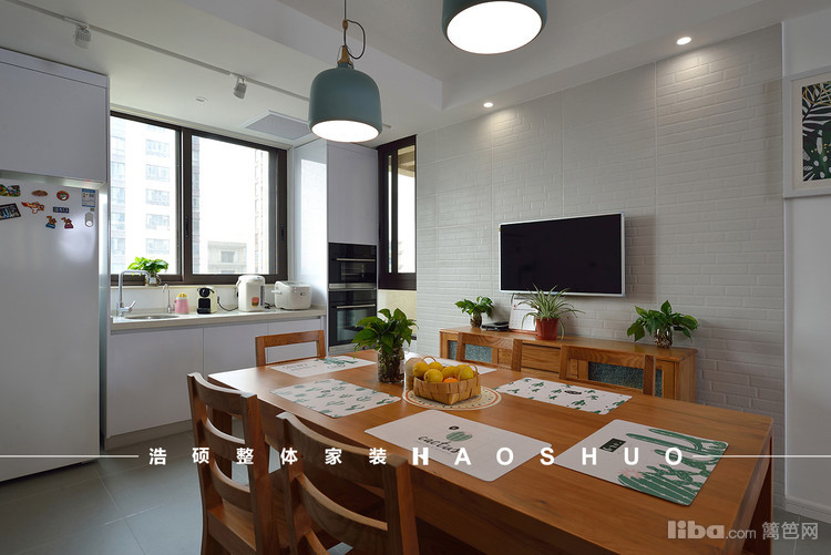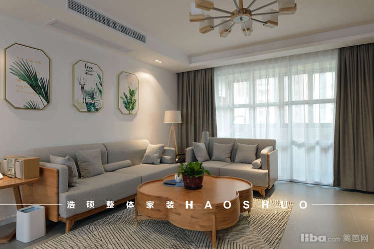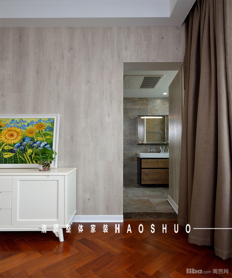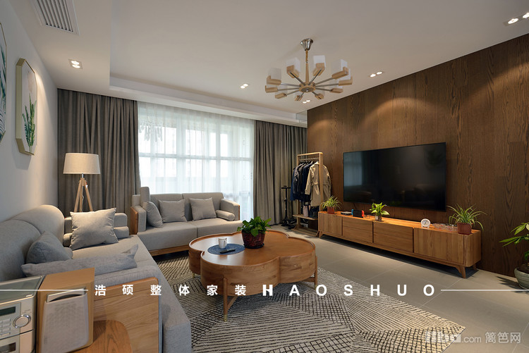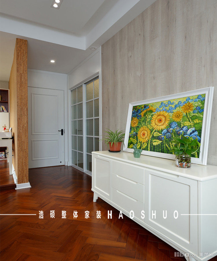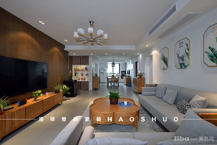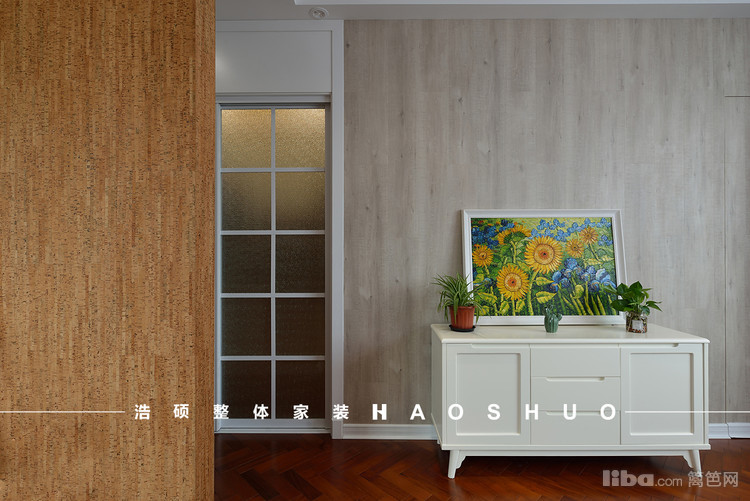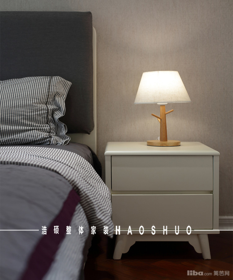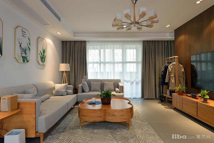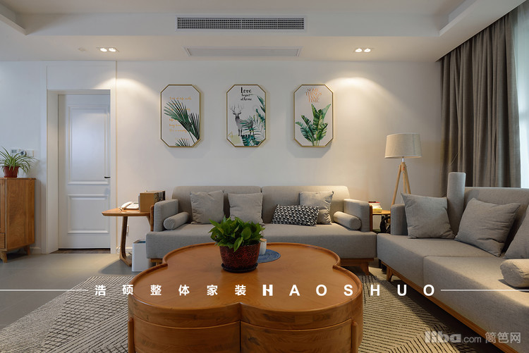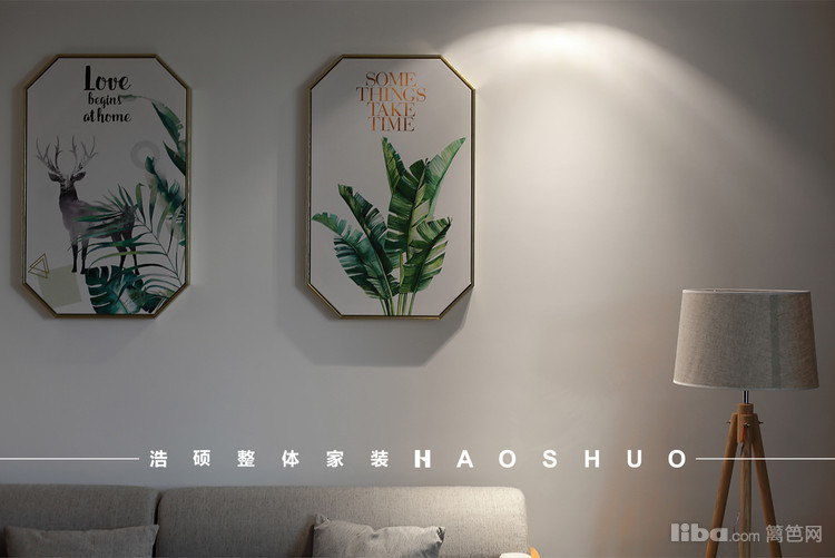 木质背景墙配上大白墙再加上简单的装饰画,清新的北欧风扑面而来