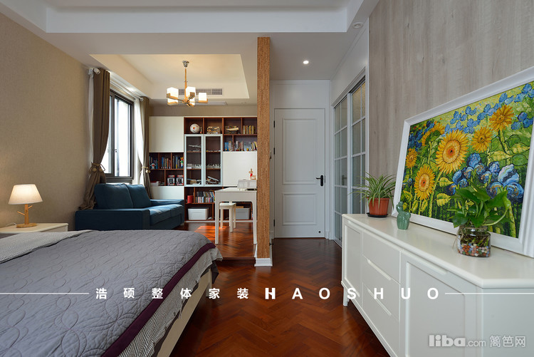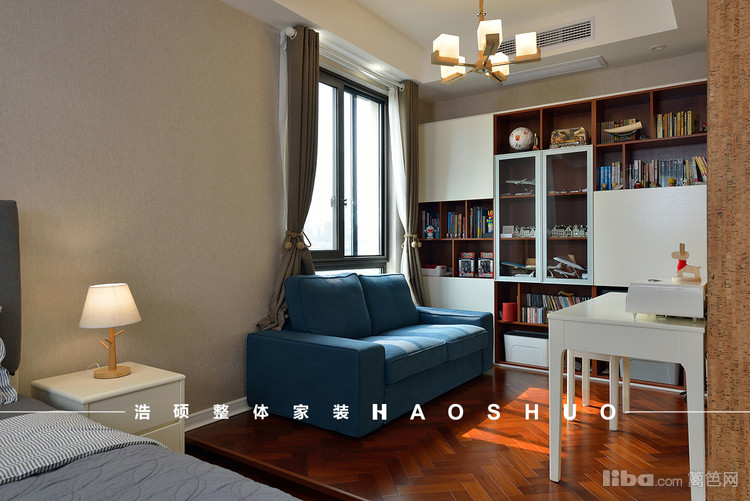 北欧风格重施工轻装饰,更好的储物空间比较考校设计师的水平,本案设计师打造的多功能主卧,集成了衣帽间+休闲区,配合的相得益彰,毫无违和感。