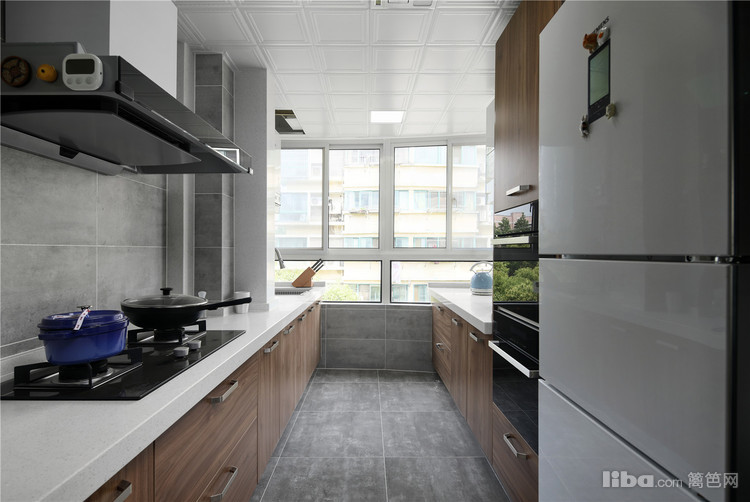 原厨房是改造了的,把北阳台扩进了厨房,所以厨房偏大,而且细长,我们缩小了厨房,让出了部分空间给餐厅