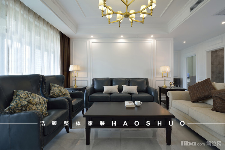 线条分明的美式风格,大量的木饰面衬托出简单的华贵