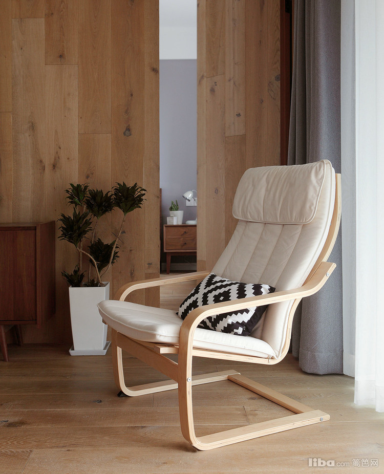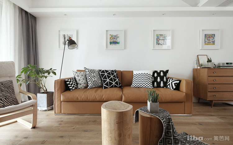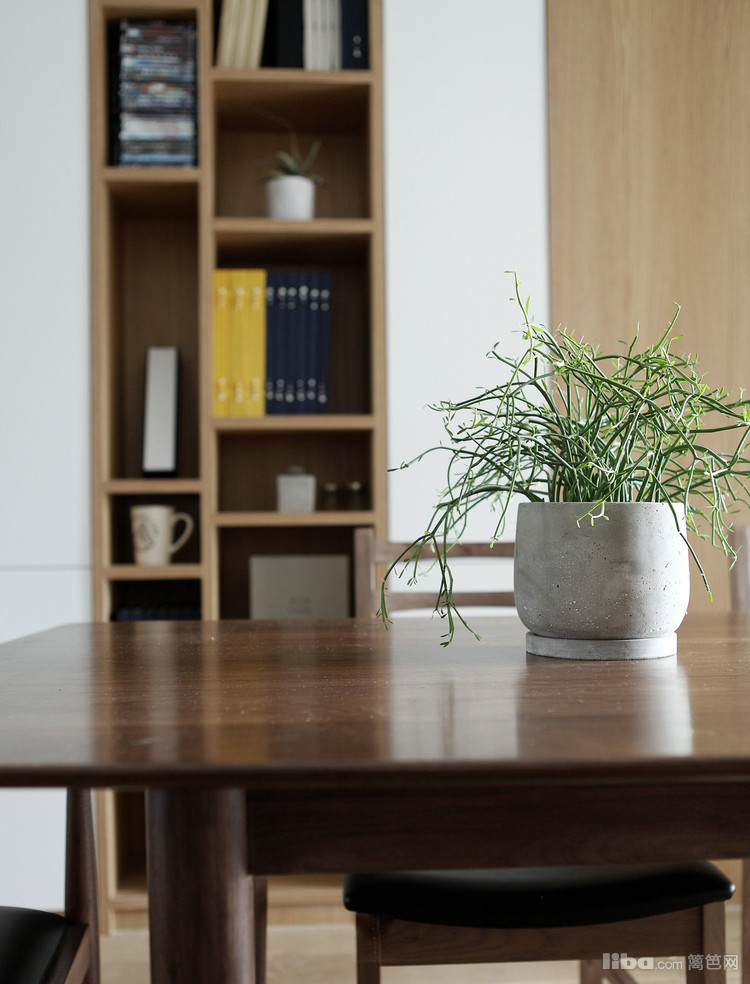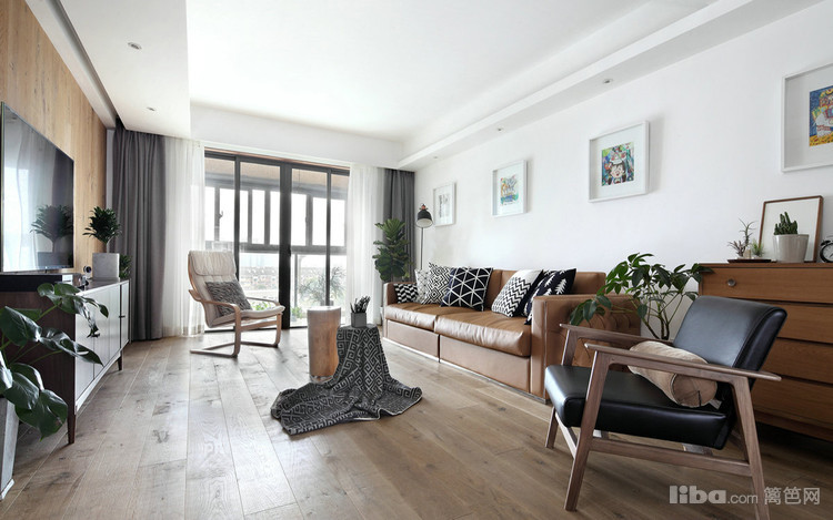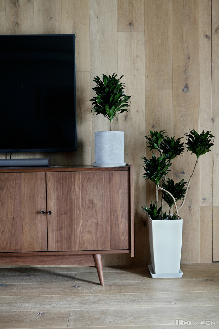 北欧风格,运用了大量的棕色系,辅之以黑白灰等基础色调,带来一种回归自然的宁静感。大面积使用橡木材质,青翠的盆栽和绿植点缀其中,休闲且亲近自然。