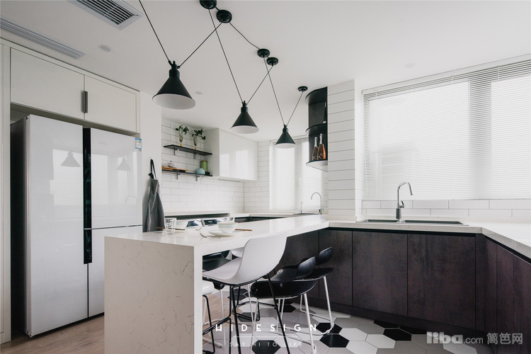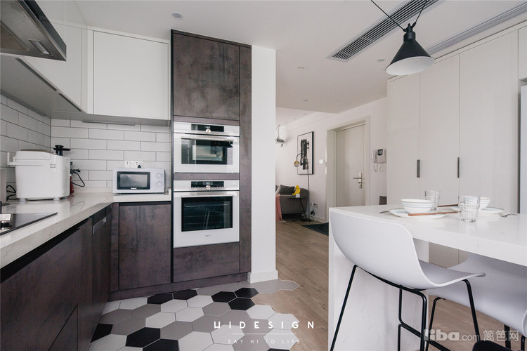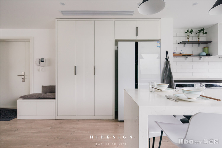 因为父母在楼下,所以餐厨区域整体打通,使整个空间更明亮。主卧部分做为一个大套间,保证了私密性。