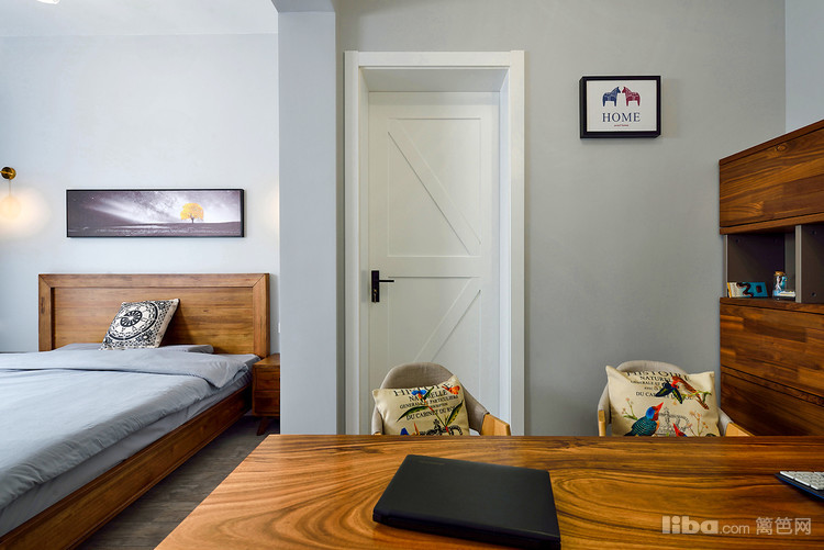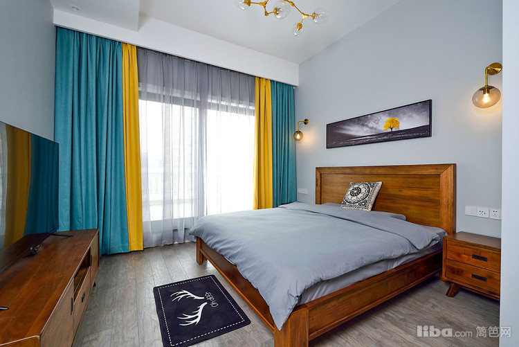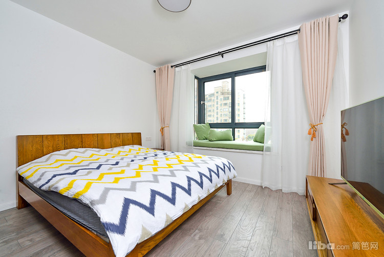 次卧做了飘窗,床品和窗帘的选择都是清新简约为主。