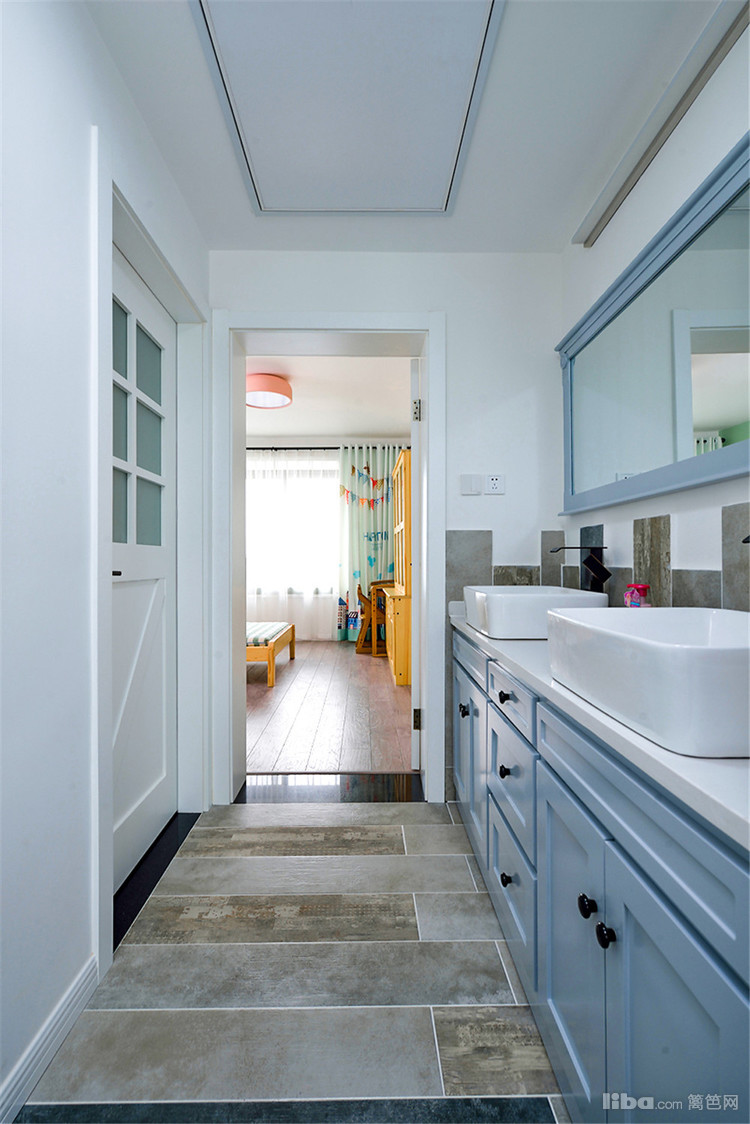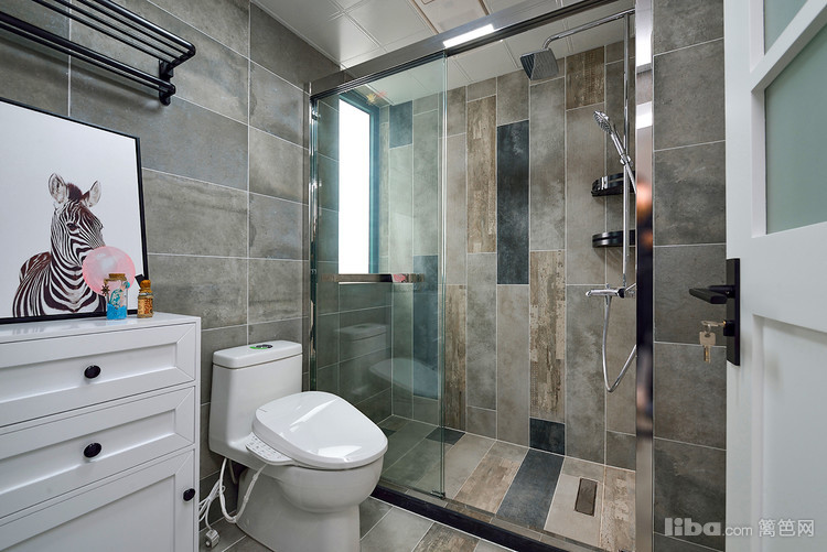 次卧淋浴区,不规则的颜色和铺贴方法是亮点。