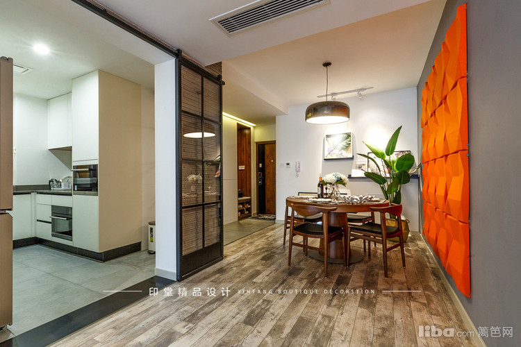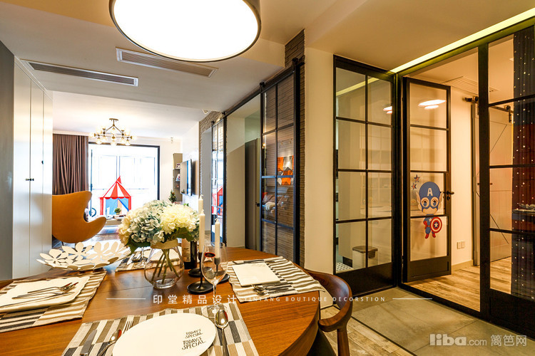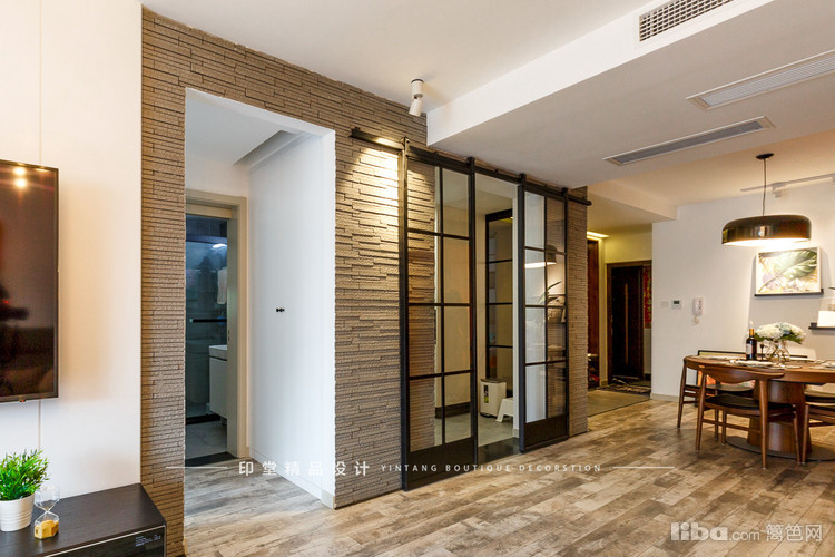 右边的玻璃门是原来的厨房门,由于风水的问题设计师改成了玻璃门,顺便解决了采光问题