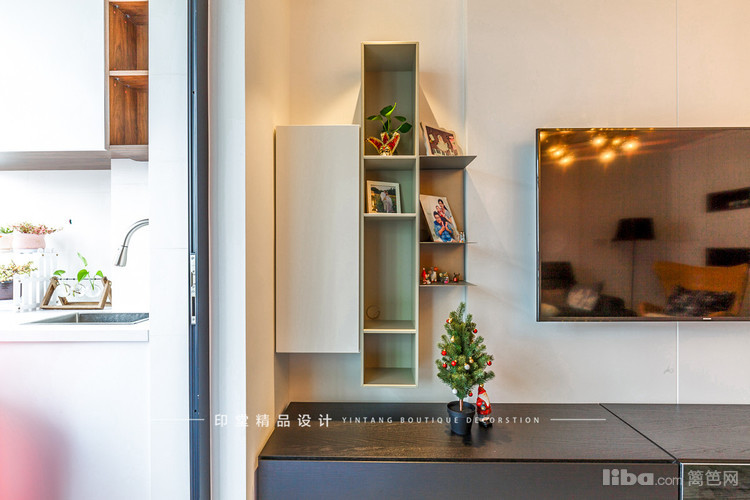 不规则的收纳柜,放一些小摆件,很有家的味道。