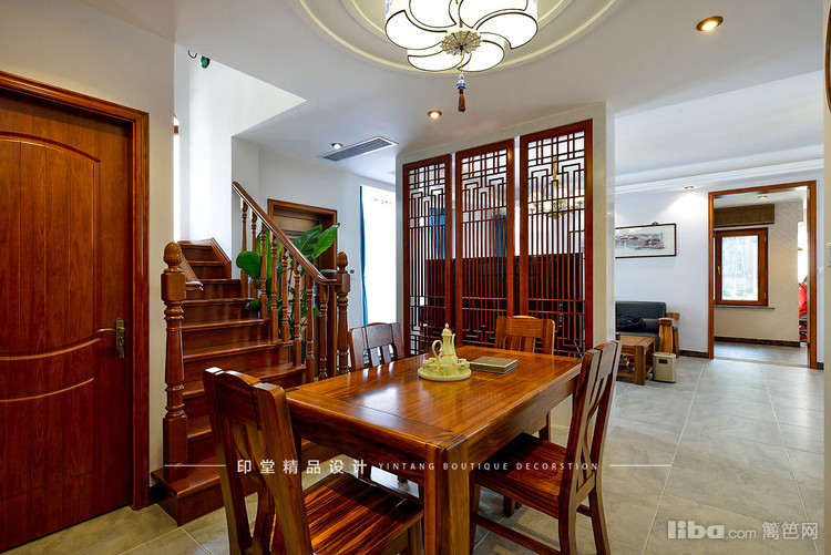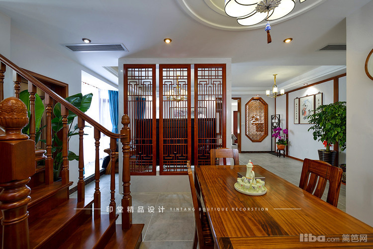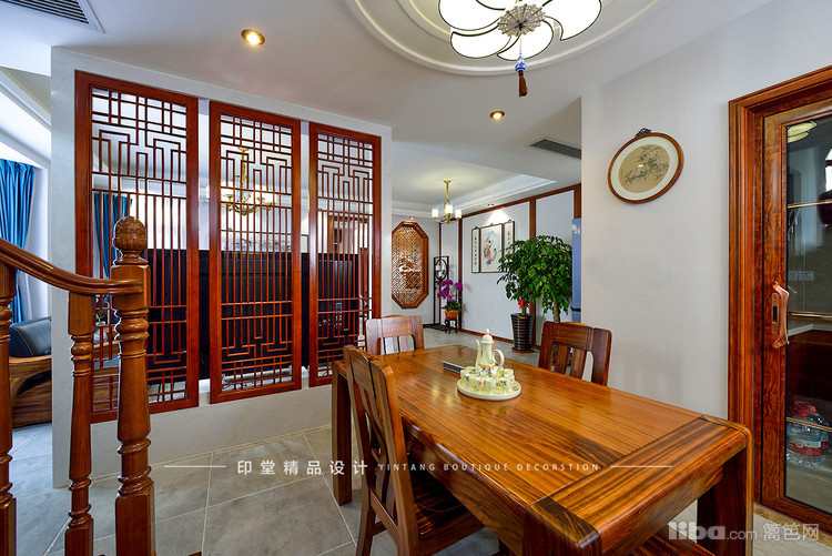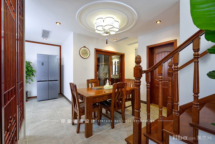 餐厅上方的灯具也是中式风格的。