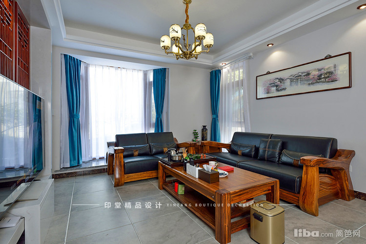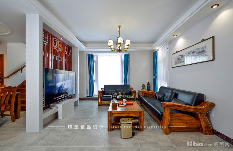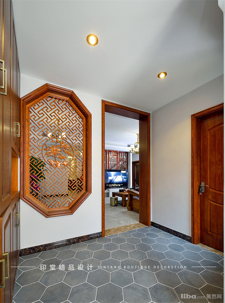 镂空的电视背景墙让客厅与客厅间有个很好的过渡。