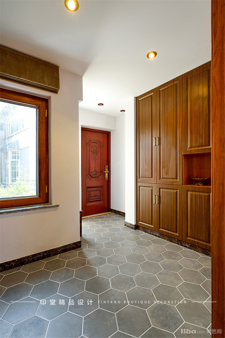 进门的地砖用了灰色的六角砖