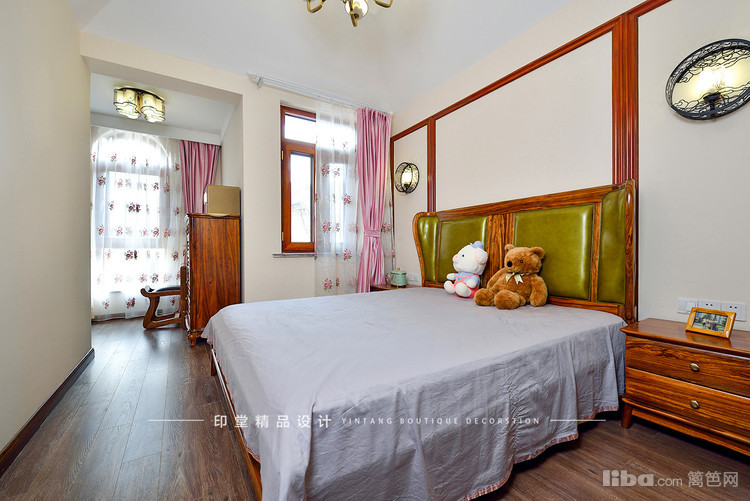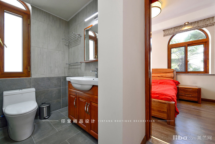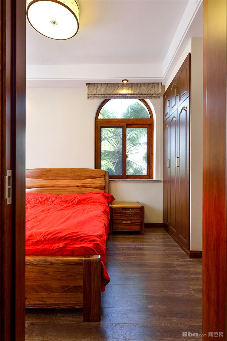 主卧室用的墙地砖也是中式风格的。上浅下深视觉上比较的有层次感。