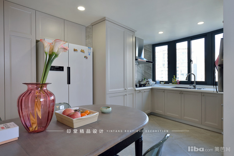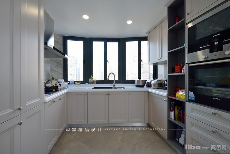 厨房是U型台面,美观与实用兼具。