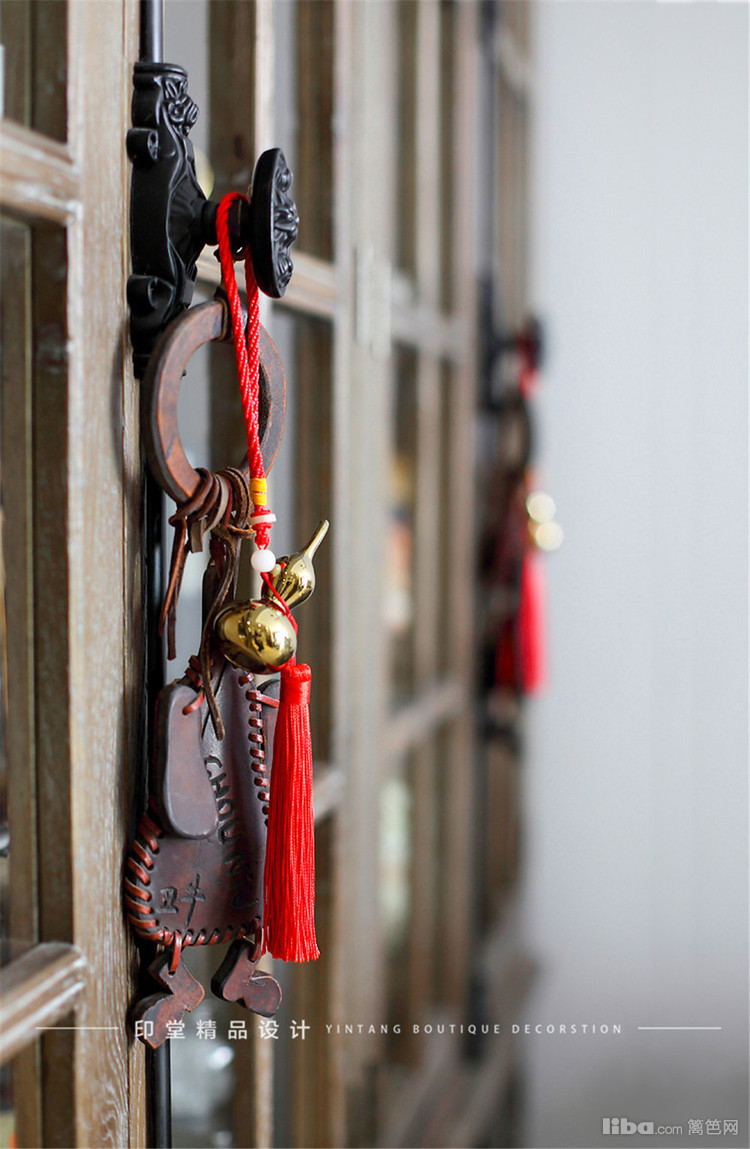 复古风的玄关柜,麋鹿造型的灯具营造出宁静的居家氛围。