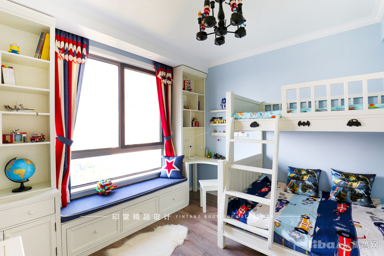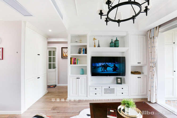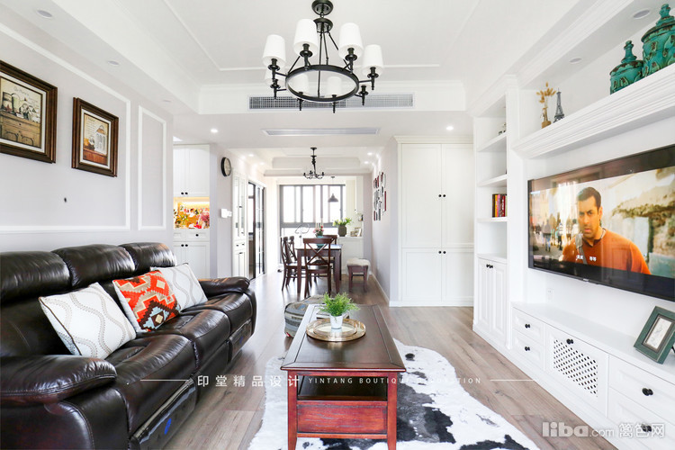 餐厅区域延续了整体的美式风格,餐边柜是借的墙体的厚度做的柜子,增加了餐厅区域的收纳空间。