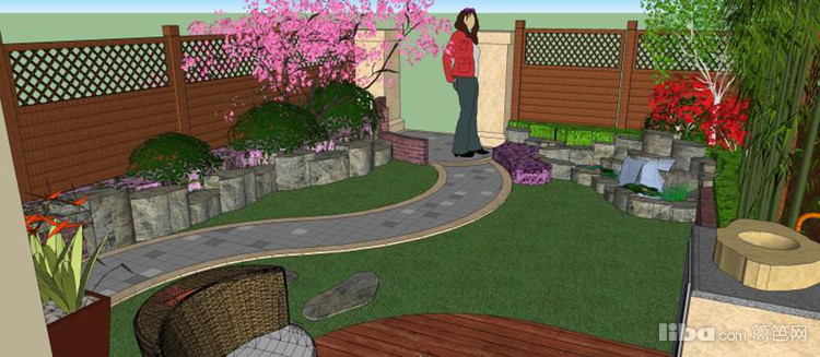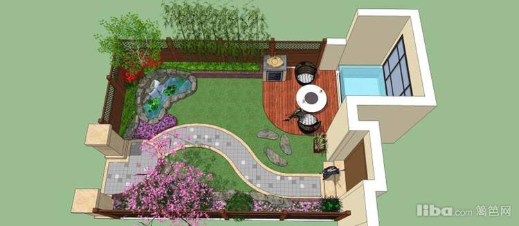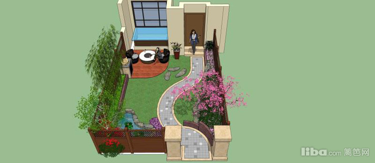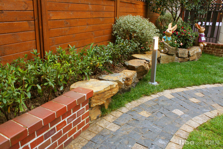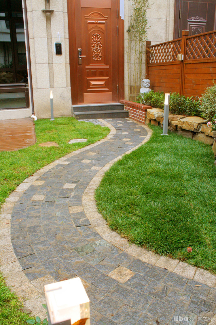 以灰韵小料石铺装,米色小料石镶边的步道,采用S形布局,营造温馨、柔和的氛围。