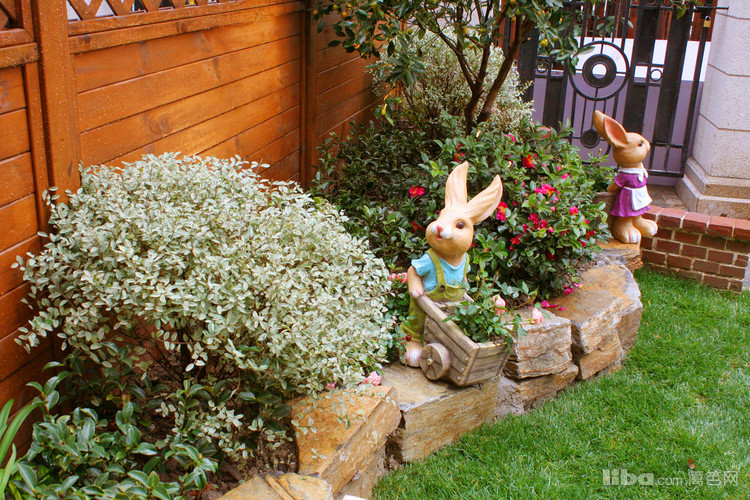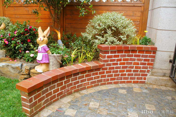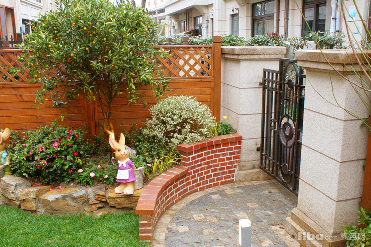 入户玄关处采用园艺砖砌弧形矮墙,配以金桔树,兼具遮挡道路视线方向功能的同时又是入户处的一道靓景。