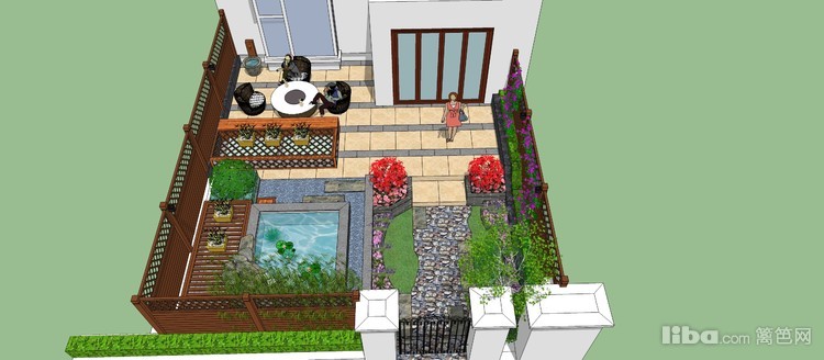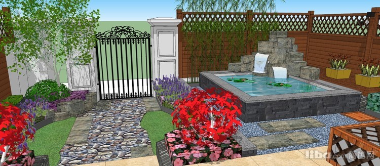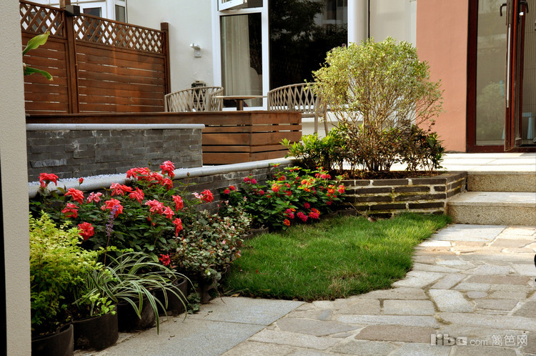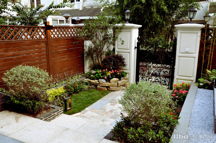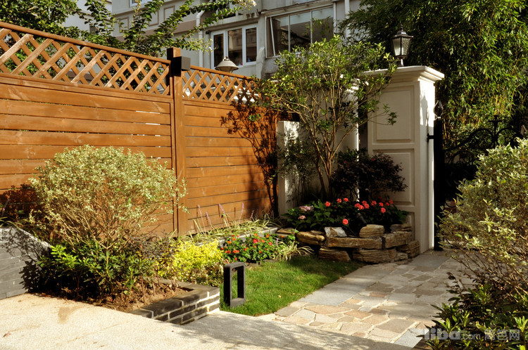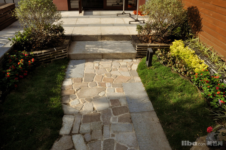 花园入口处,推开铁艺小门,就能看到乱拼纹铺贴的路面,配以两侧色彩丰富的花卉植被,自然而又随意。