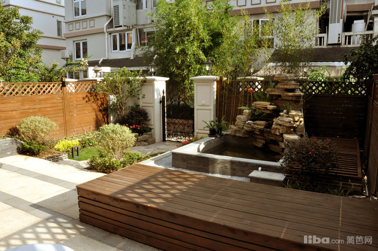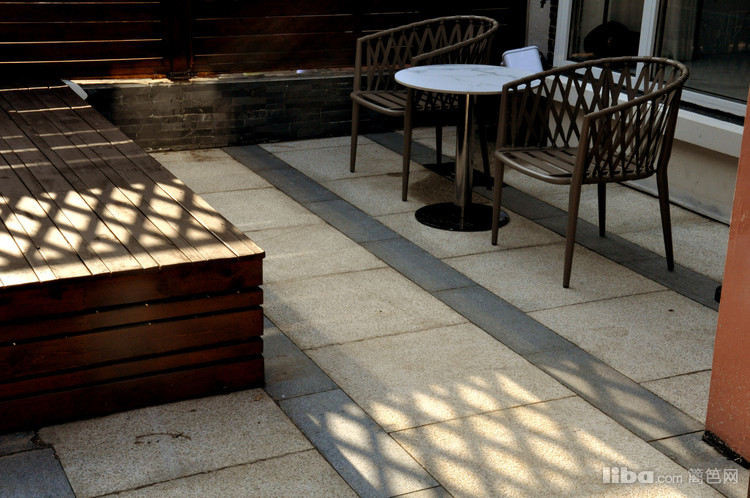 整个庭院使用简洁而内敛的材料组合——木料、石材、老灰砖等,很好地衬托该庭院的实际环境。