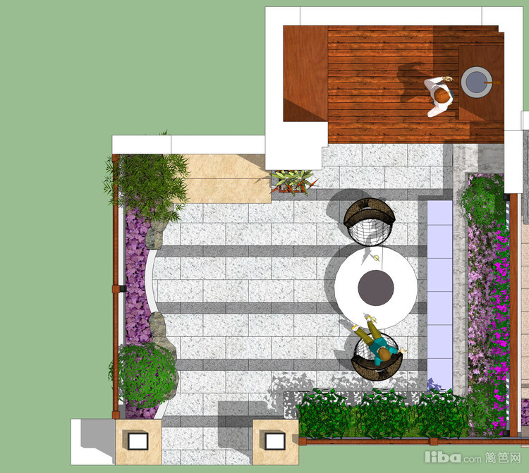 “自然”和“亲近”是贯穿始终的花园设计主线,运用芝麻灰大理石和灰砖组合的铺贴方式,打破路面的单调,围边花坛配以四季花卉,营造一种自然惬意的氛围。