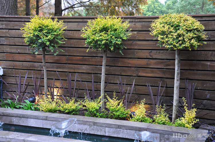 3棵树冠圆圆的棒棒糖,站立在水池后面,如同穿在绳上的一串珍珠,自成一景,彰显其特有的魅力。