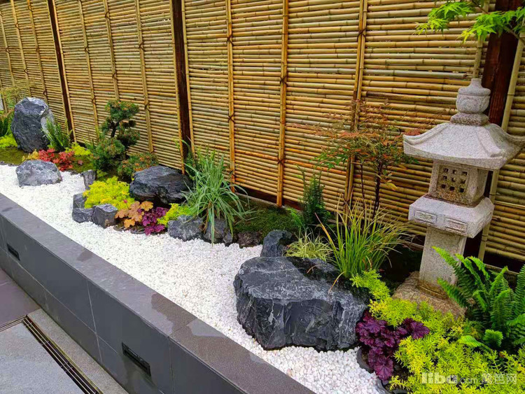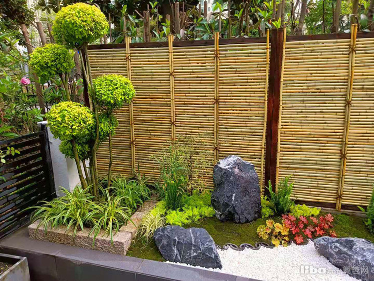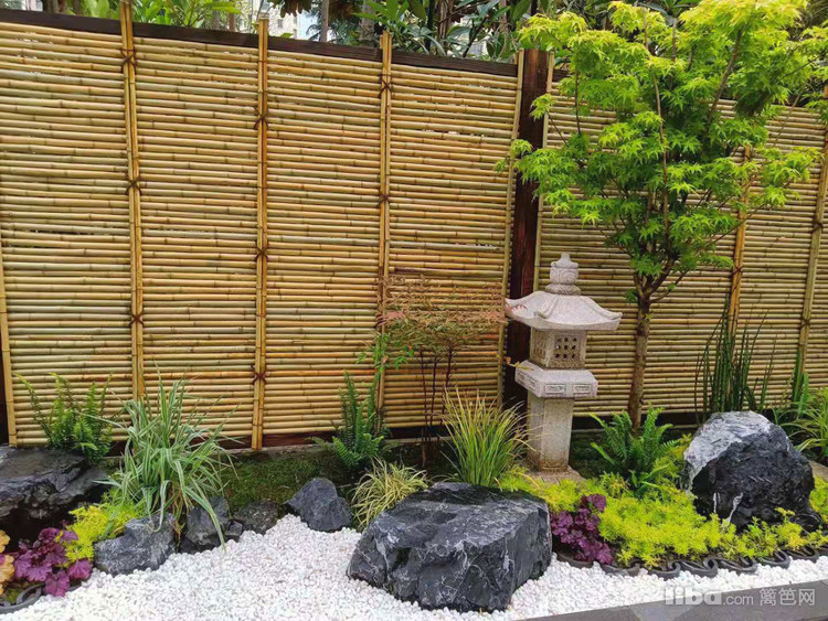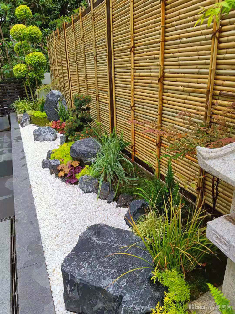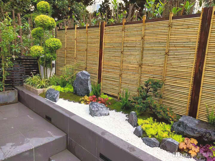 用竹篱笆来营造庭院整体的禅意空寂氛围,花坛里的植被种植明朗,层次分明。