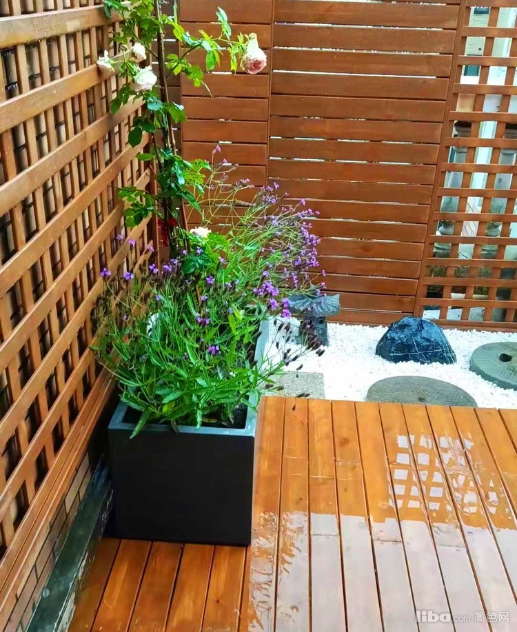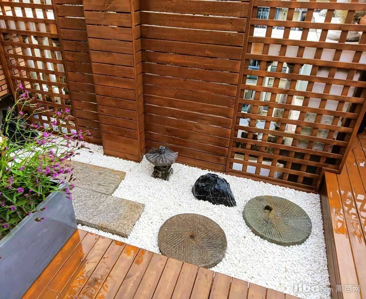 汀步采用日式特有石块铺贴,摆上几块黑山石,搭配石灯笼,让狭小的空间具有艺术观赏之趣。。。