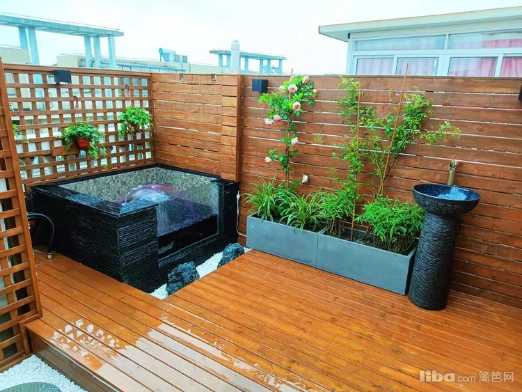 地面采用防腐木进行抬高,让空间更具层次感。。。