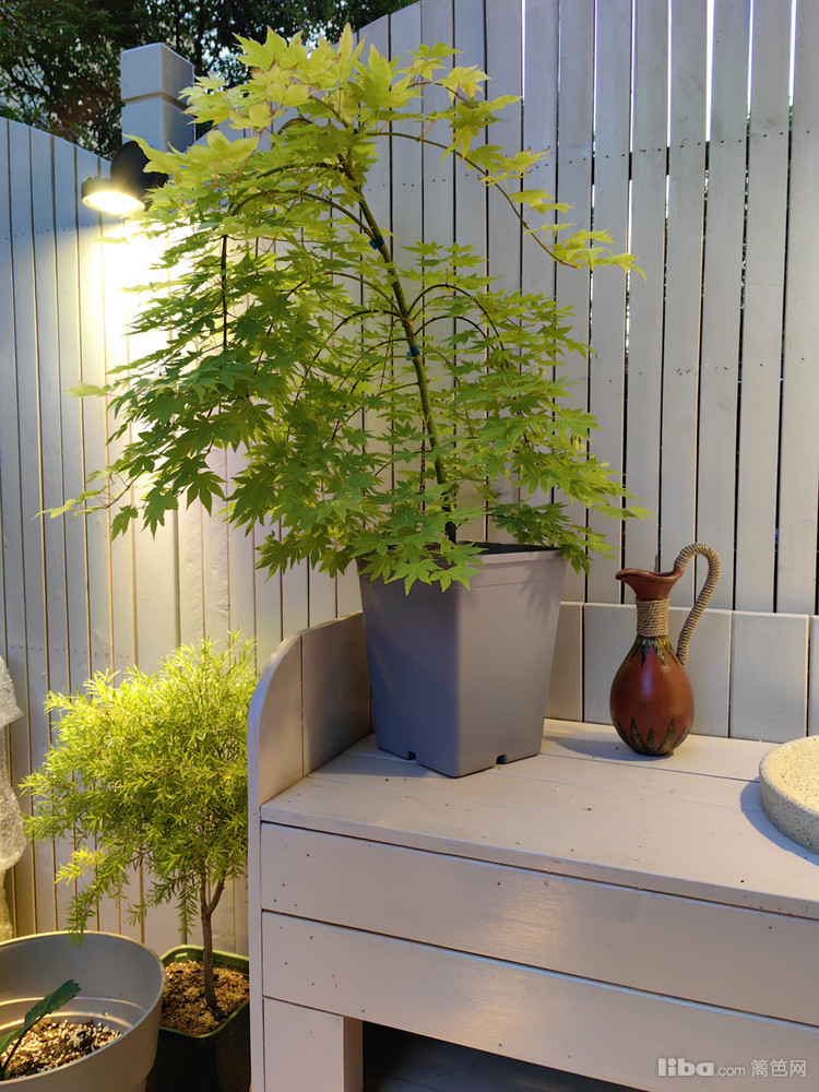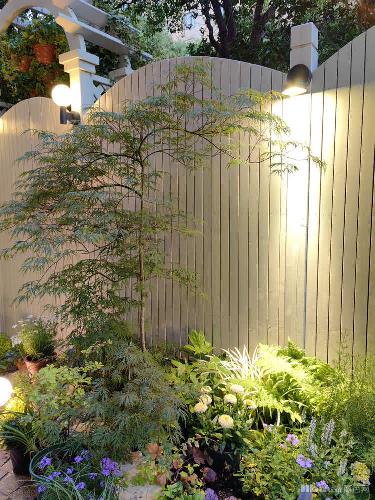 造型独特的羽毛枫,为园中花卉增添了一丝高级错落感。
