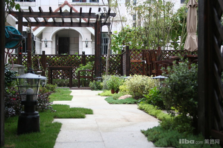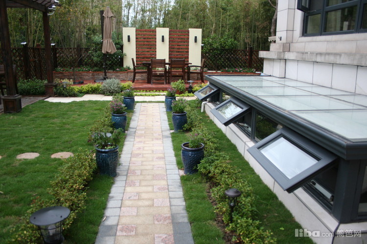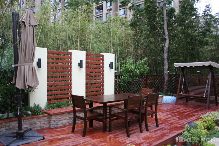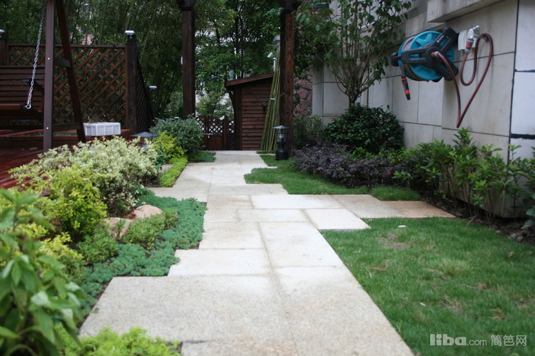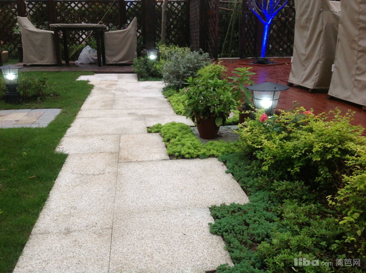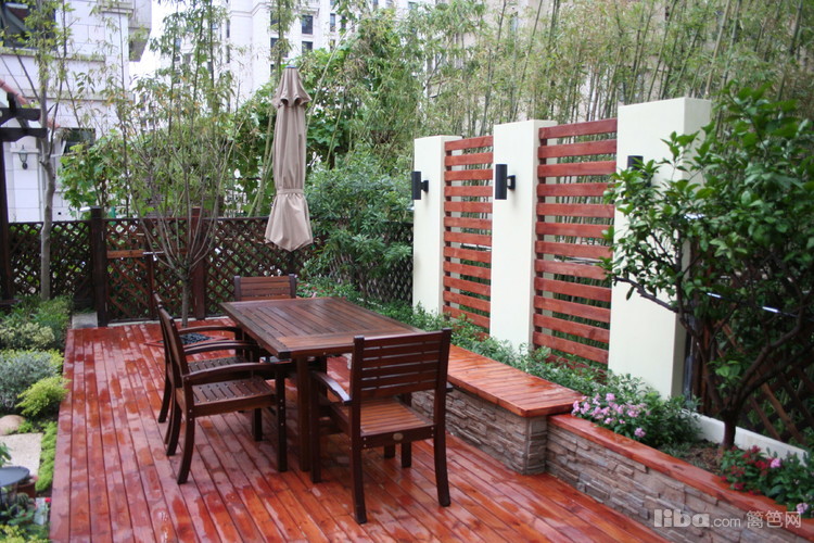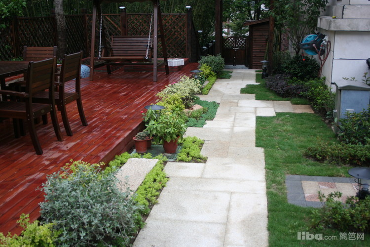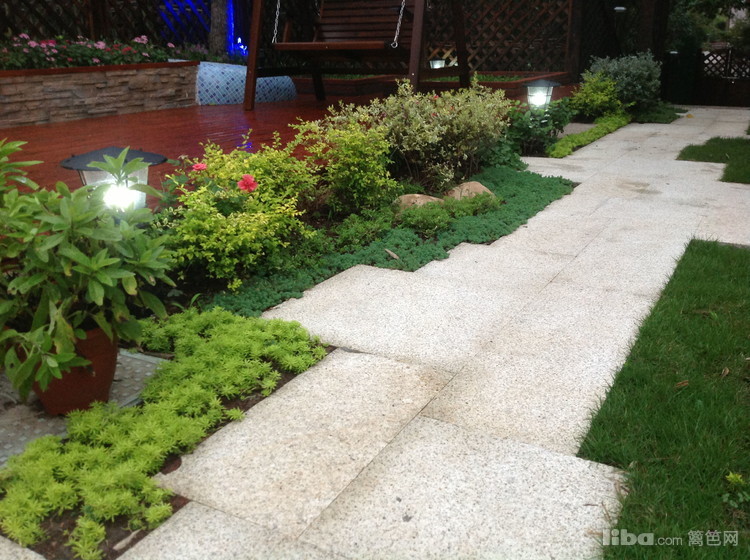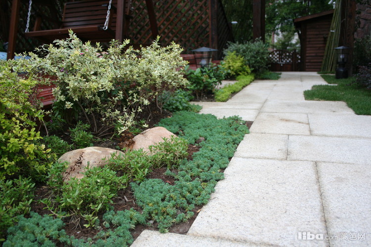 文化石坐凳配以温馨的防腐木让主人可以静心的触摸到每一簇花卉。。
